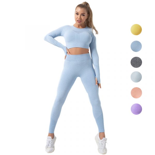 Seamless good elasticity, hollowed breathable crop top long sleeve with thumb hole.