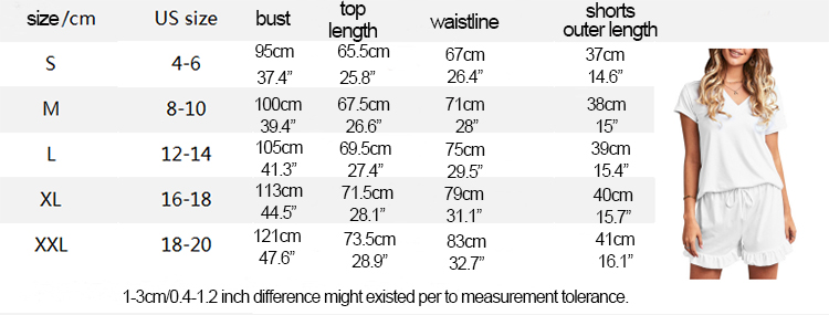 Flounces hem pants V neck short sleeves top 2 pieces set women loungewear